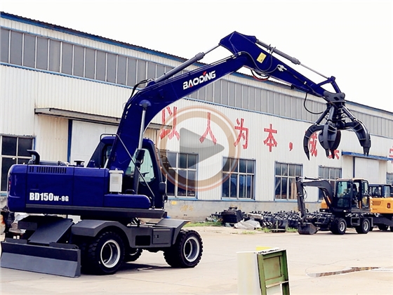 宝鼎150元轮式抓具抓具重量1500kg ~ 2000kg,可配梅花抓具、电动吸盘、旋转抓具、袋抓具。系统采用了成熟高效的液压系统,使机器在复合作用下具有出色的操控性和抗流量饱和性。行走系统采用主流轮式挖掘机的轴箱传动系统,具有性价比高、可靠性好、牵引力大的特点。维修方面,采用折返式龙门配重,实现“一站式维修”,设备维修可在地面完成;实心轮胎和空心轮胎的双重选择,提高了整机的工况适应性和性价比。